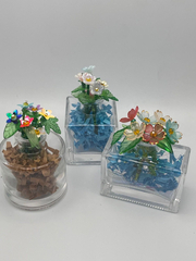 Beaded Flowers in Glass Vase: Sparkle, shine, and flowers that never wilt! Select two mini glass vases and create the flowers to fill them. Many colors and options to pick from to personalize your creations.