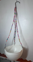 Hanging Beaded Planter Basket: Select your beads to adorn a 20”, 3 strand wire hanger to add to an 6” or 8” plastic hanging basket. Take it home and add a plant or flower to hang inside or out.!