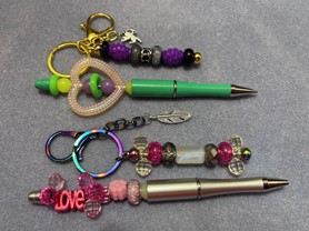 Beaded Pens and Keychains: Create one of a kind pens and keychains for a gift or your own use. Participants will create 2 pens and 2 keychains. NEW - Select a silicone focal bead for each piece!